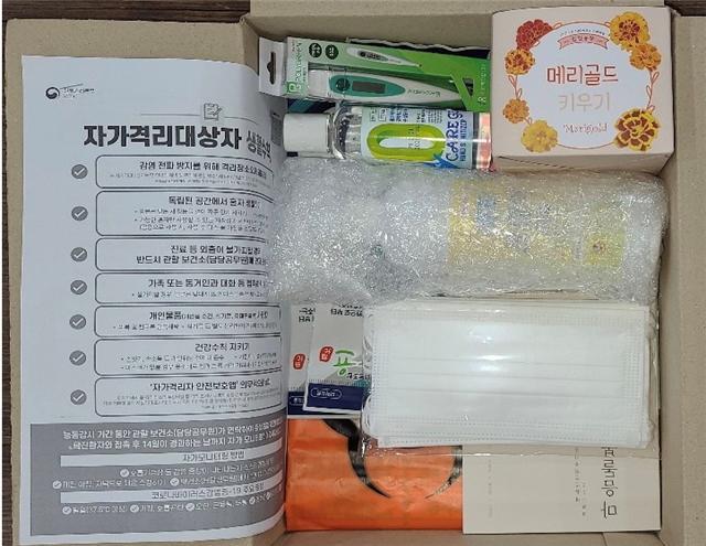 ▲ 자가격리대상자에게 제공되는 키트.(확진자 가족에게 위생물품 발송 시 자가진단키트 1세트(2개입) 추가 제공한다