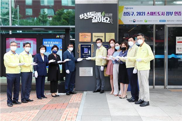 성동구는 지난 10일 국토교통부 ‘스마트도시 인증’ 평가에서 우수 스마트도시로 선정되어 인증서와 동판을 수여받았다.